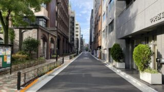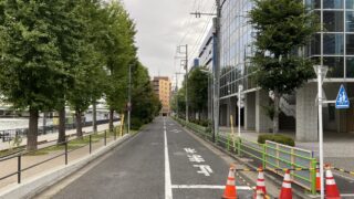 電柱とケーブルがなくなったことでスッキリ感がすごいです。街路灯は側溝の端に設置されているので通行の妨げにならないようになっています。