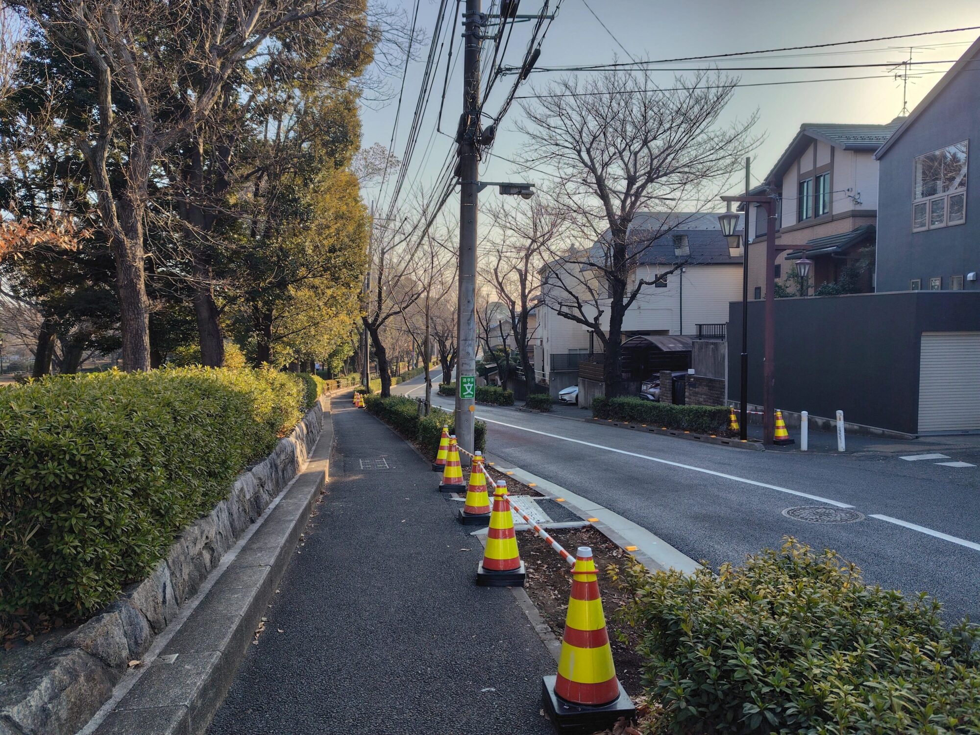 成城学園前駅周辺でも無電柱化された道路は一部のメインストリートのみに留まります。駅前の道路は無電柱化計画があるようなので、そちらの動向も追っていきたいと思います。