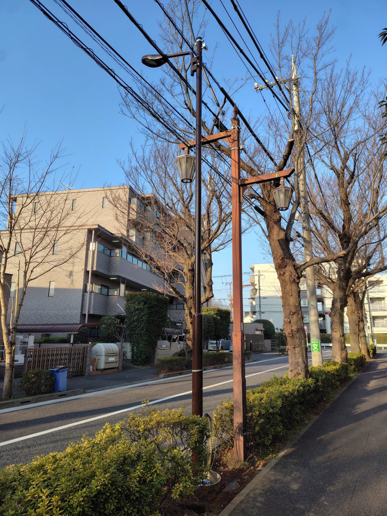 街路灯は新しいものに更新するようで、新旧の街路灯が並んでいました。旧街路灯はデザイン性の高いものでしたが、新しい街路灯は汎用的なものとなっています。