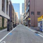 通りの途中には坂道やカーブがあっておもしろいです。歩道上には無電柱化の際に必要となる地上機器のスペースや、メンテナンスのための特殊部が設置されていました。