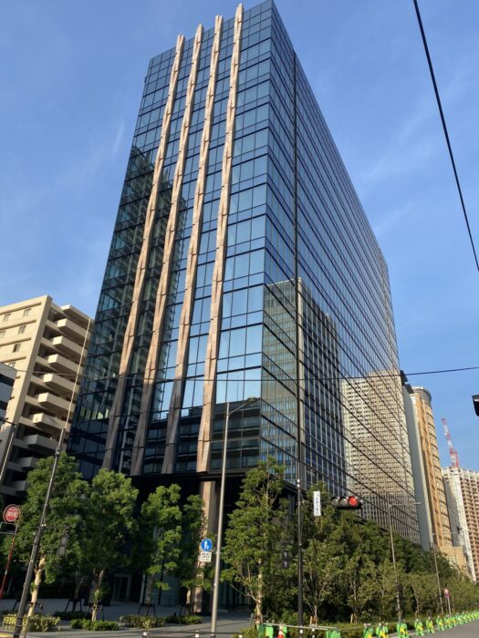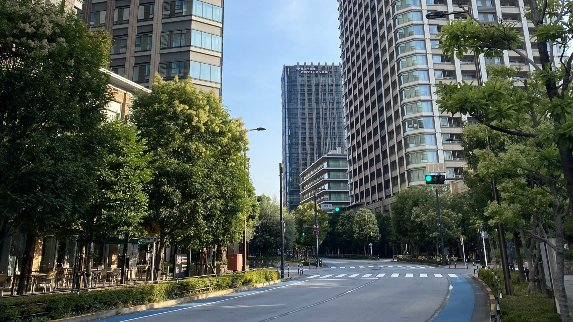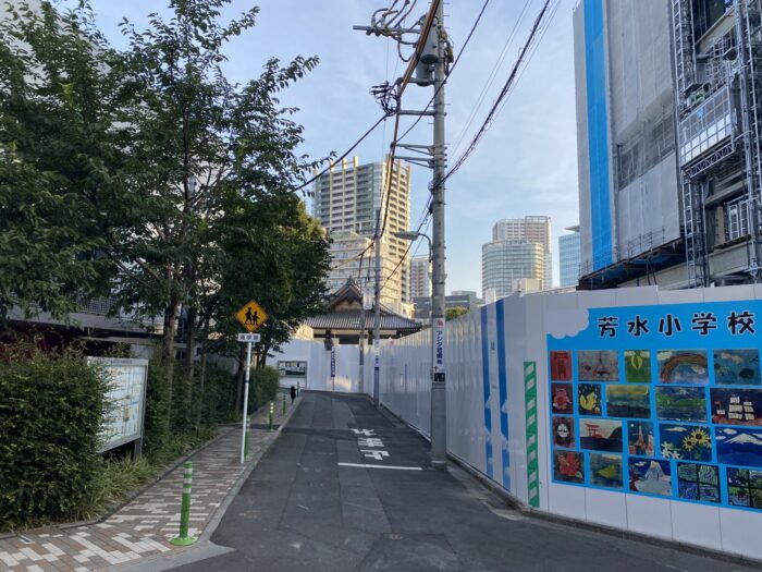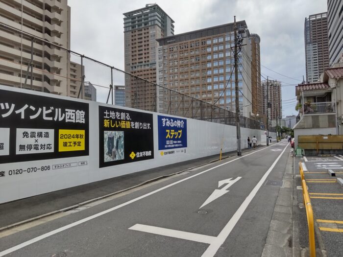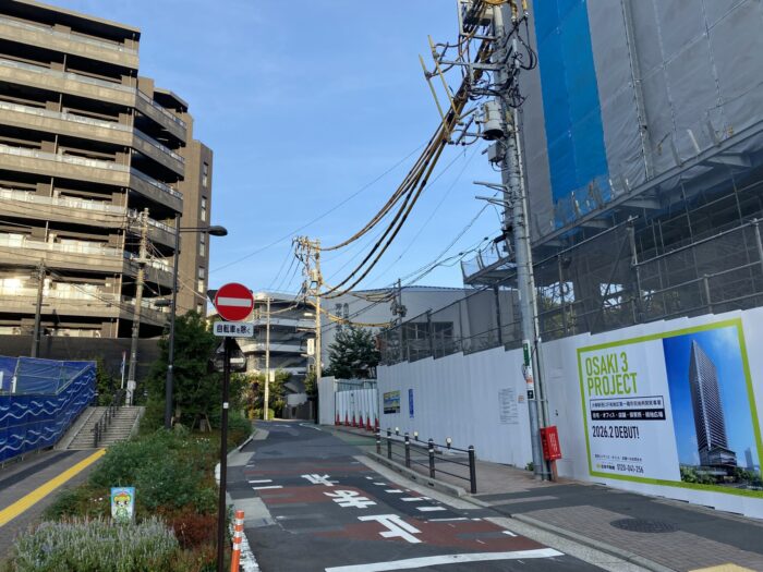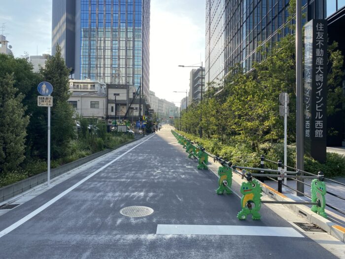 住友不動産大崎ツインビル西館は2025年5月に竣工しました。この再開発ビルの建設にあわせて、敷地北側の道路が拡幅整備されました。