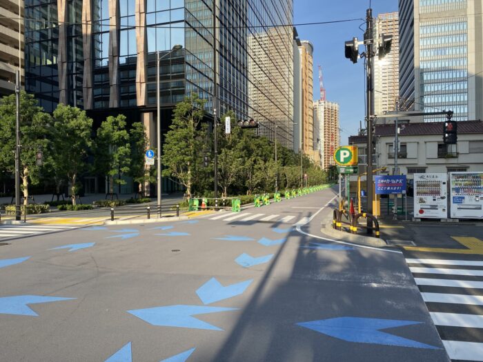 無電柱化も同時に行われ、周辺環境との一体感が高まりました。この道路北側の区画でも再開発構想があり、その際に道路がさらに拡幅されることが予想されます。