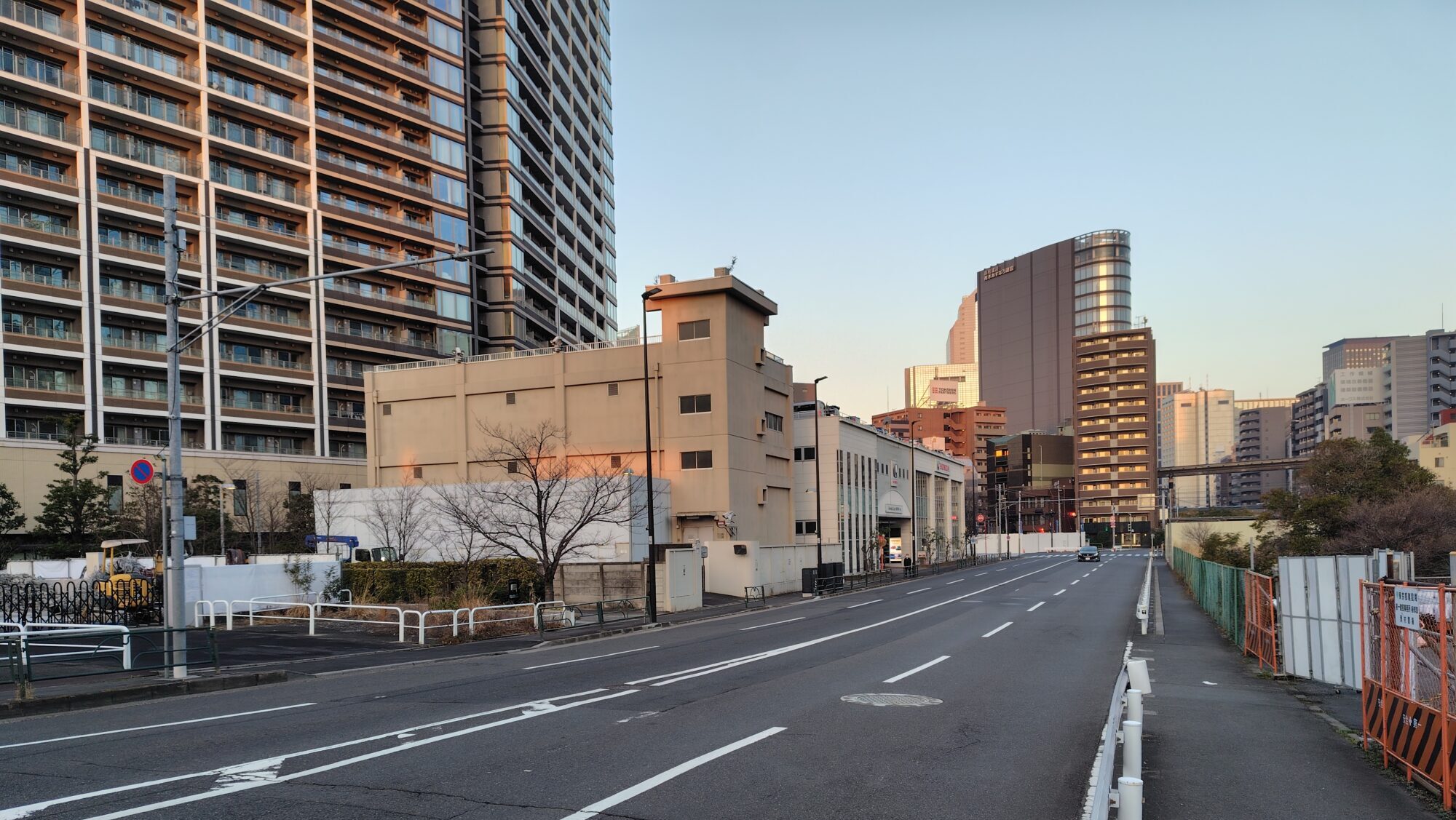 田町駅至近、JRの線路と第一京浜の間を通る道路で無電柱化工事が始まっていました。整備区間は日比谷通り起点付近~国道130号です。