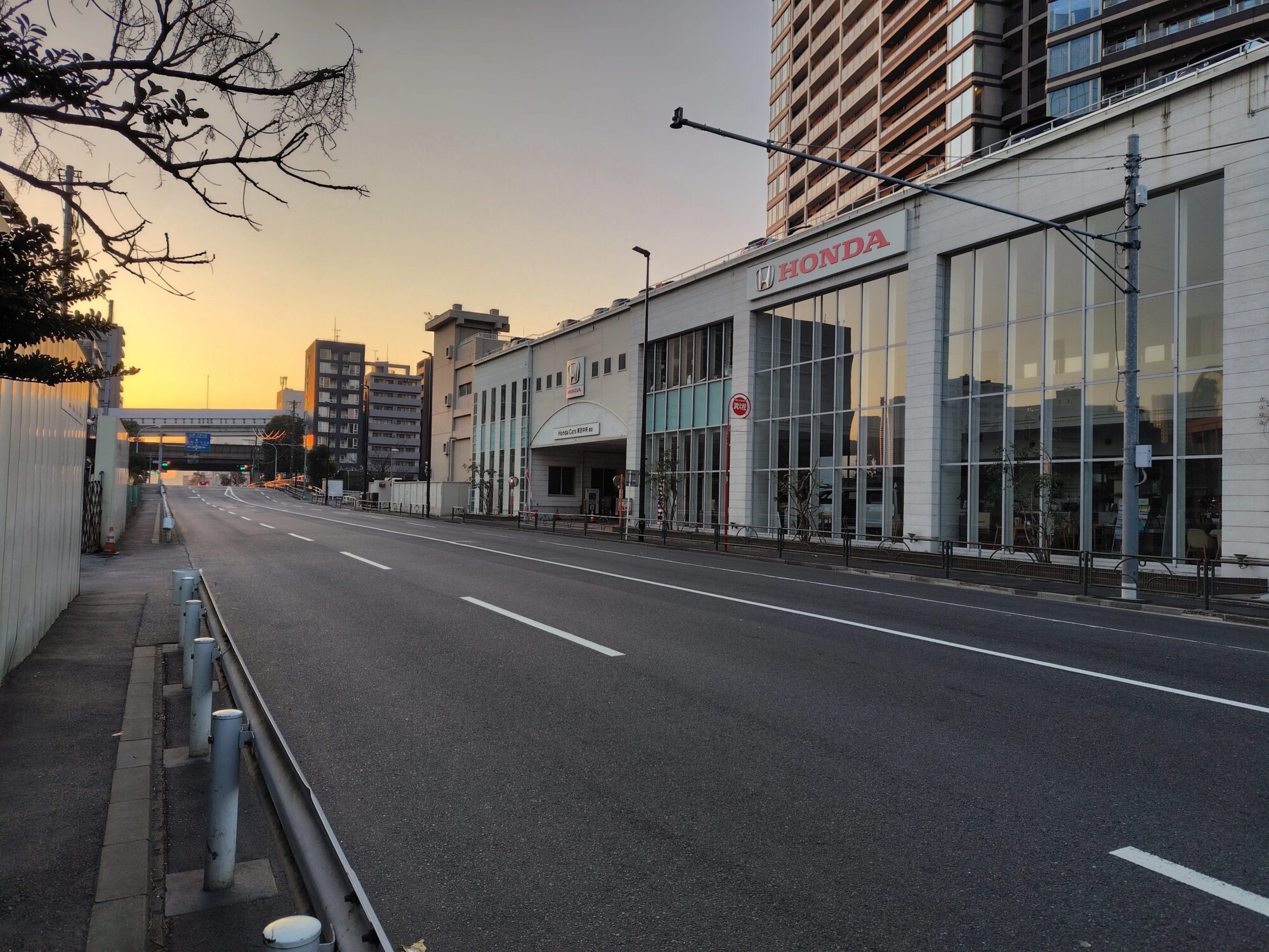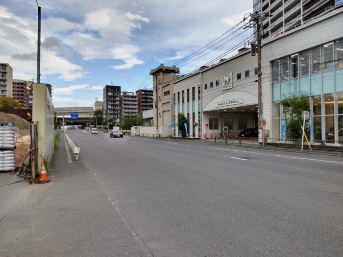 芝浦の運河沿いを通る国道130号で無電柱化が完了していました。整備区間はJR高架下~南浜橋です。以前は南側に電柱が設置されていました。