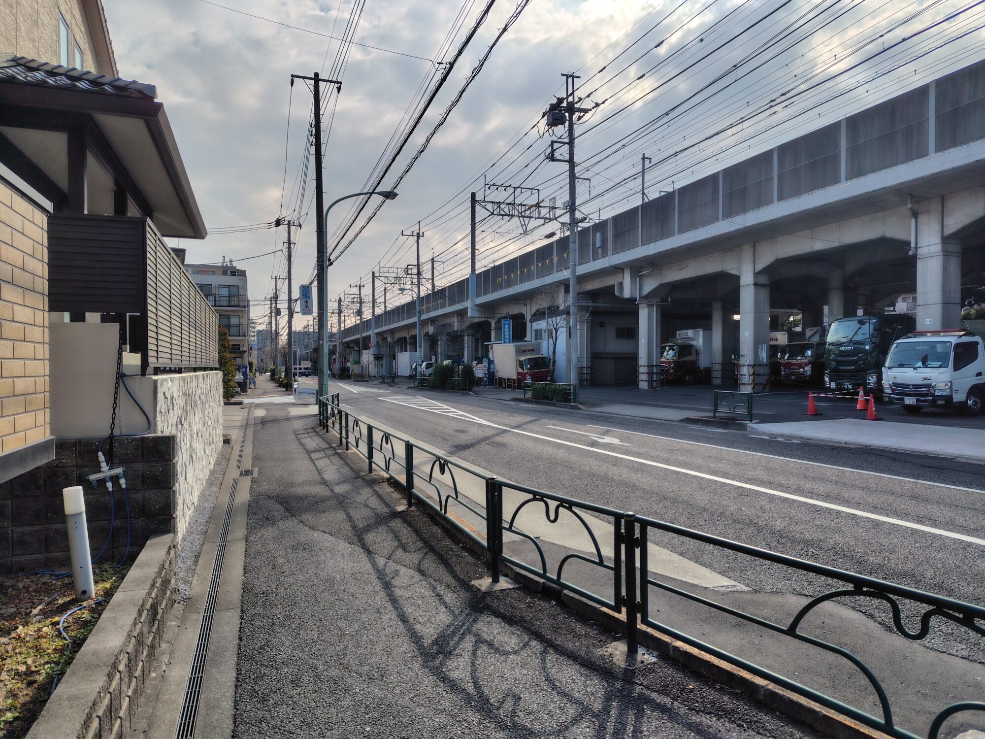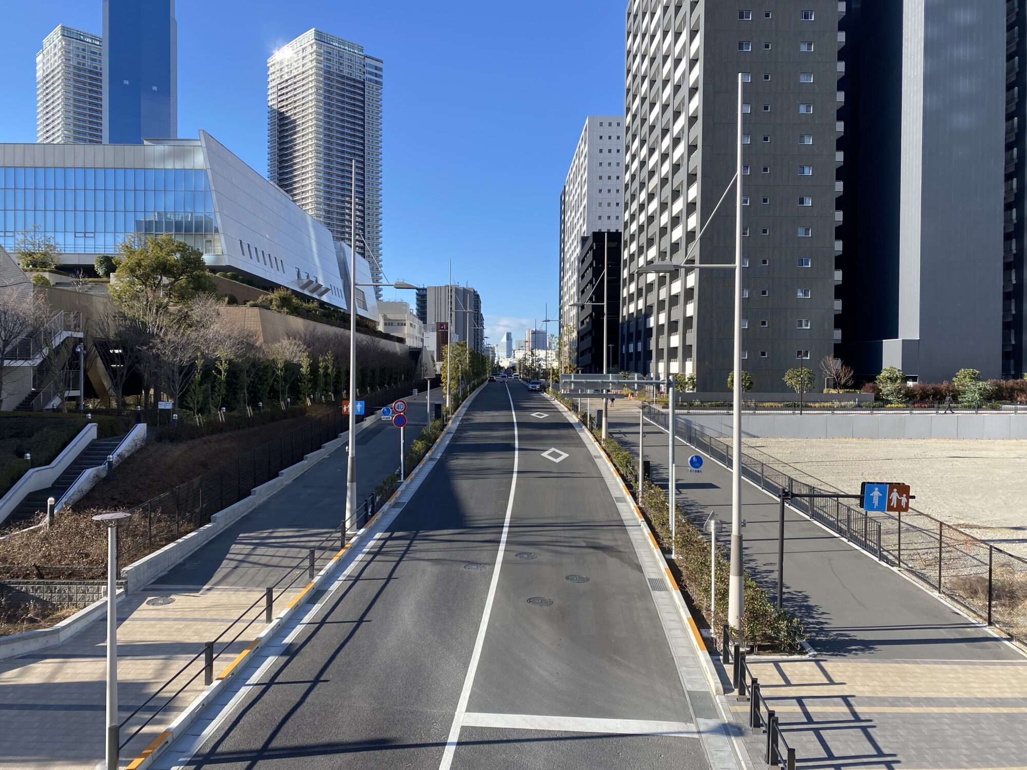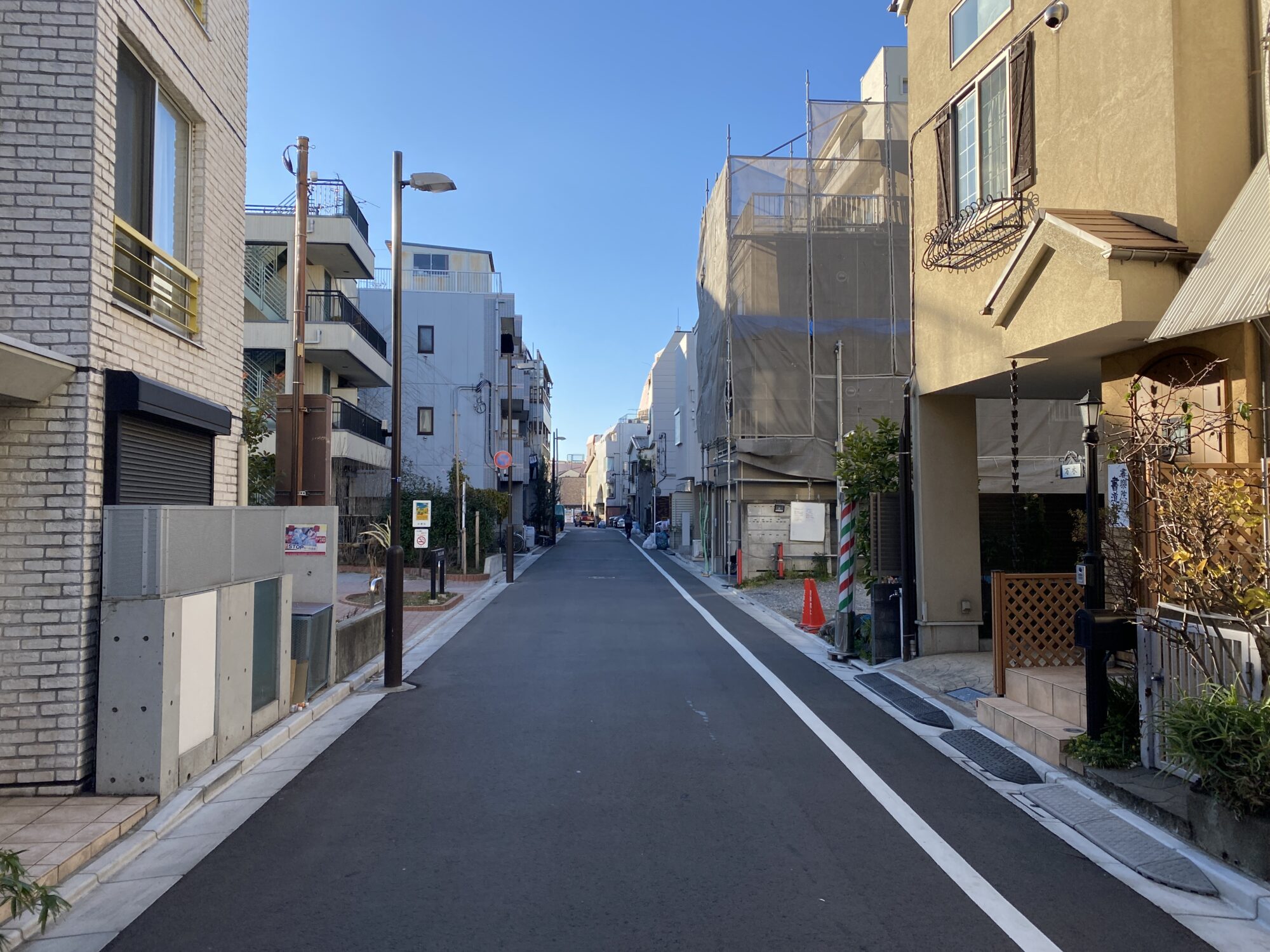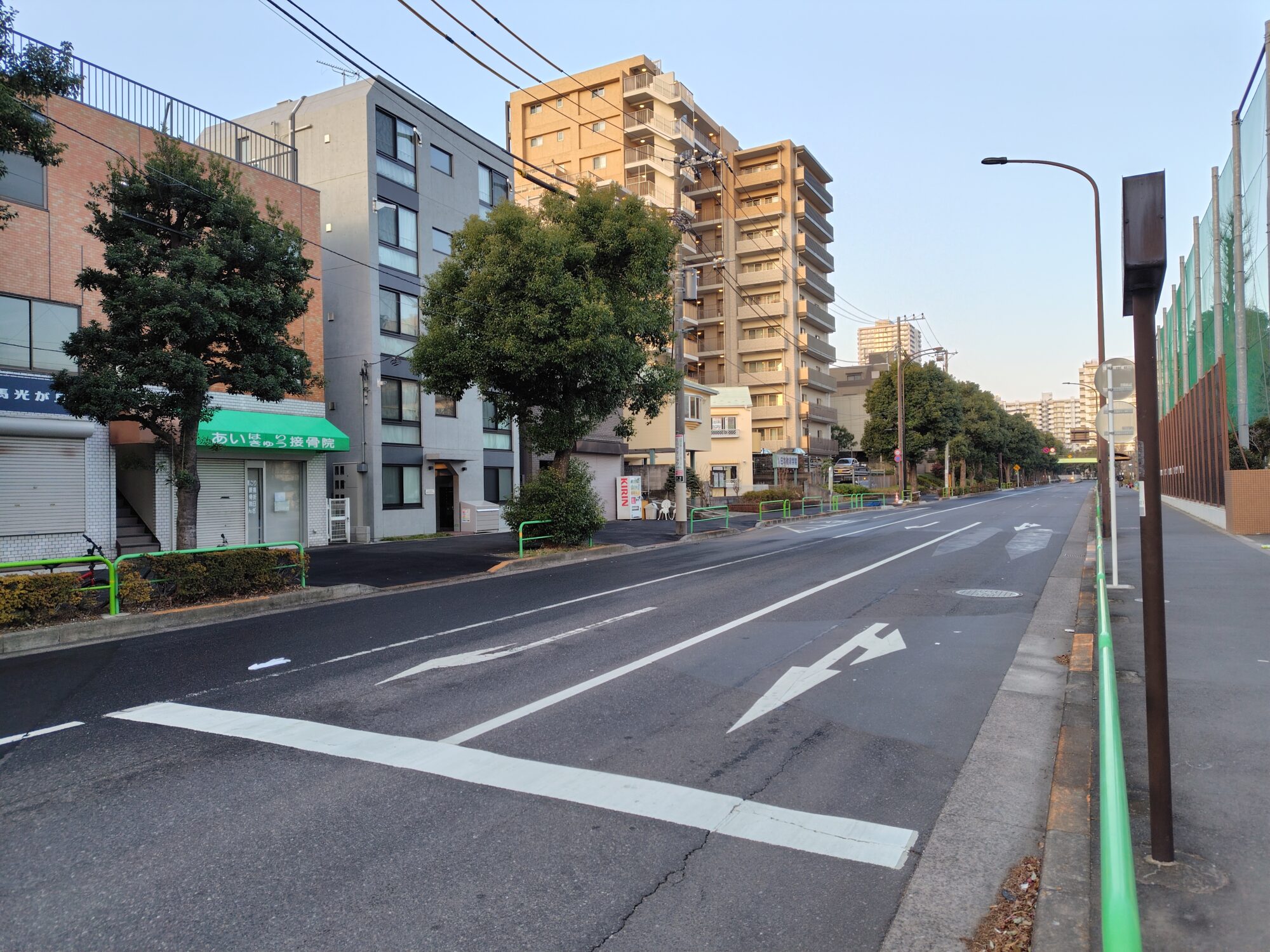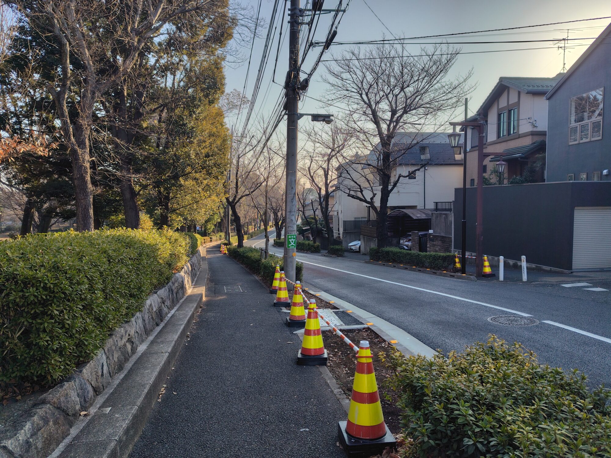 無電柱化された道路(一部電線あり)