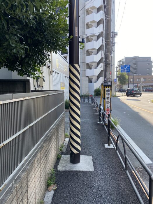 無電柱化のために新たに設置された街路灯ですが、通行の障害になりそうな場所に設置されたことは残念なところです。