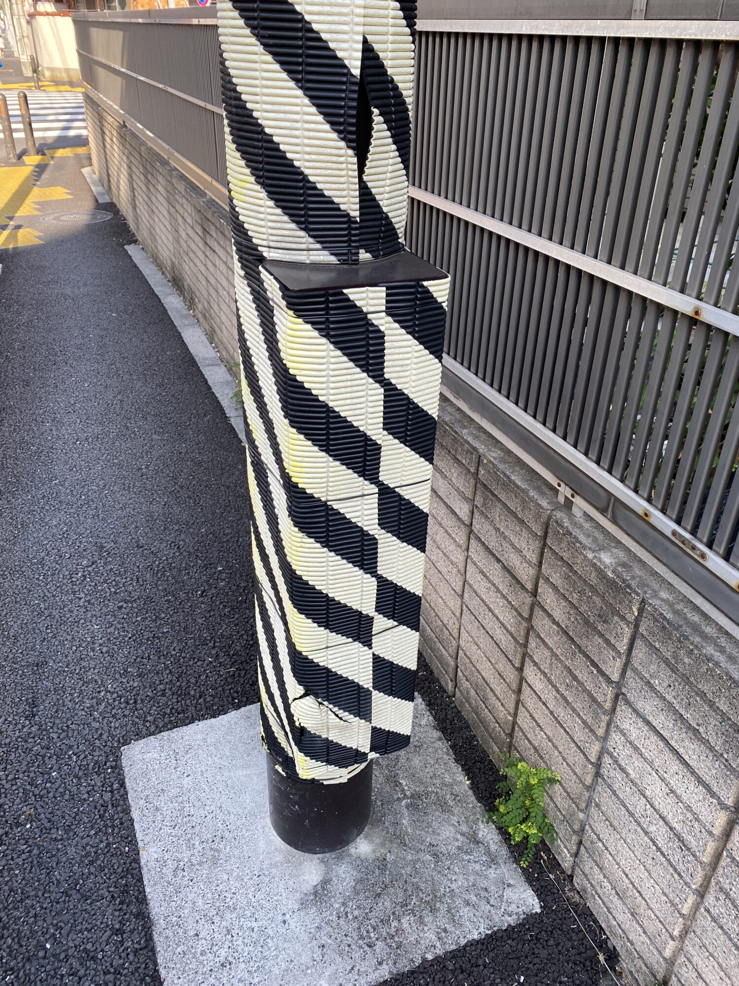 歩道上に設置された街路灯はぶつかっても痛くないように柔らかい素材でできたカバーが取り付けられていました。
