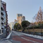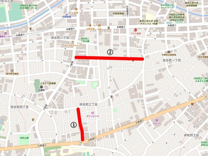 中野区弥生町では2箇所の道路で無電柱化工事が行われています。