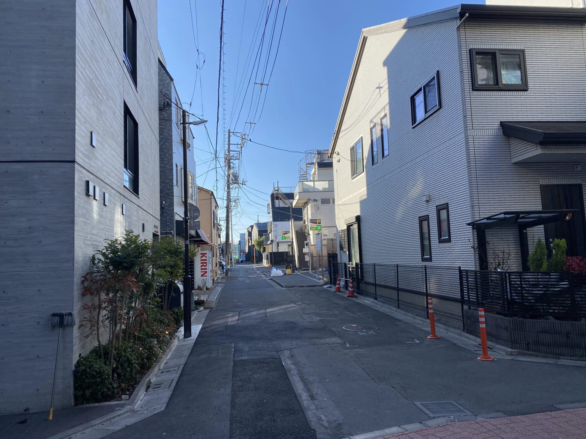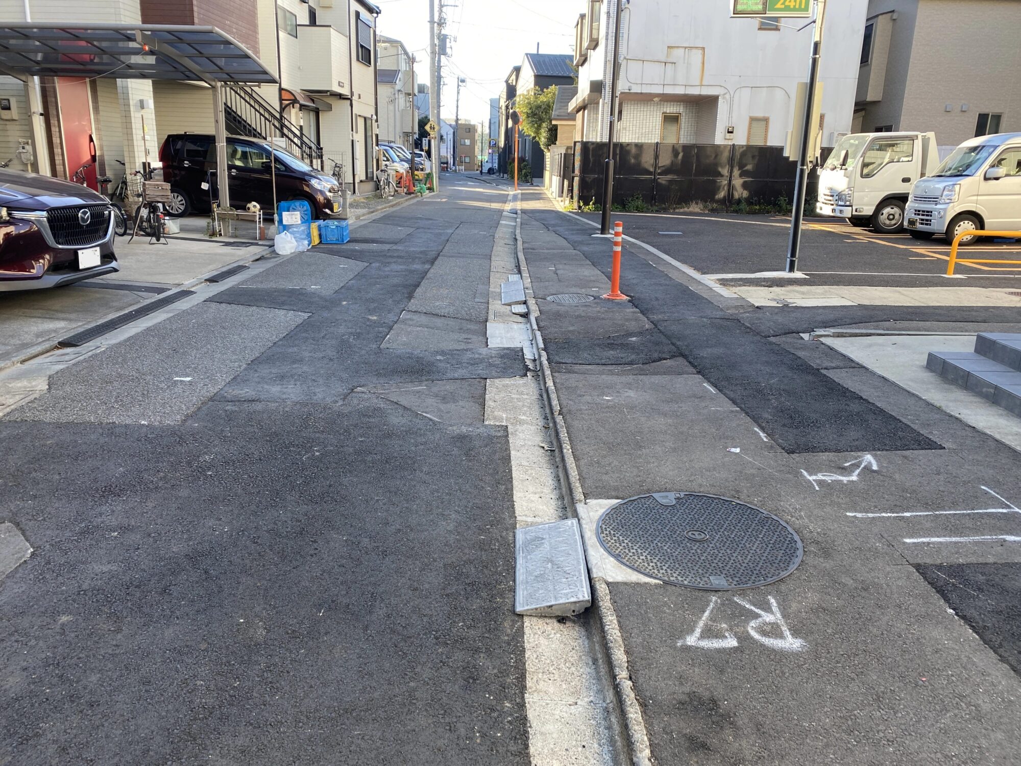整備区間は川島商店街~方南通りで、住宅街の道路です。道路の拡幅とあわせて無電柱化工事が行われています。現在は各建物へのケーブル引き込み工事が行われていると思われます。